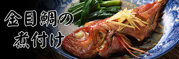 金目鯛生活在200m以下的深海,以色澤鮮紅,味道美味而受到普遍歡迎。金目鯛的旬在冬季的12月至2月,油脂含量適中,肉質(zhì)細(xì)膩。旬的金目鯛新鮮肥美,肉質(zhì)柔嫩且刺少,是日本美食中人氣的煮魚(yú)料理。由于金目鯛是相對(duì)高級(jí)的魚(yú)種之一,比較好的日本料理店才會(huì)提供,且價(jià)格不菲。